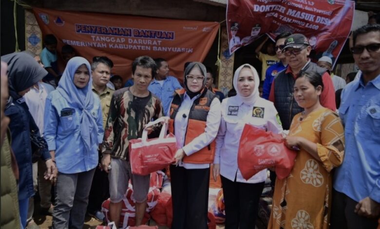 Pemerintah Kabupaten Banyuasin dalam hal ini memberikan bantuan berupa kebutuhan pokok, kebutuhan kids ware, family kit, makanan siap saji, makanan anak, terpal, handuk, daster, baju kaos pria, sarung laki-laki dan kain panjang perempuan, obat-obatan baik dari BPBD, Dinsos dan Dinkes Banyuasin.#ra