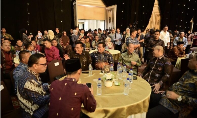 Bupati Banyuasin, Dr. H. Askolani, SH., MH menghadiri kenal pamit Irjen Pol. Andi Rian R.Djajadi, S.IK., M.H kepada Irjen. Pol. Dr. Sandi Nugroho. S.IK., M.Hum berlangsung di Ballroom The Sultan Convention Center Palembang, Minggu (8/2/2026).