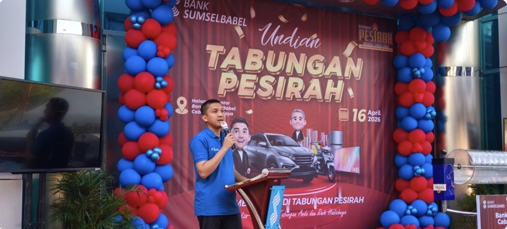 Penarikan undian Grand Prize Tabungan Pesirah Bank SumselBabel (BSB) Cabang Indralaya, kembali digelar di halaman Kantor Bank SumselBabel Cabang Indralaya, Kamis 16 April 2026.