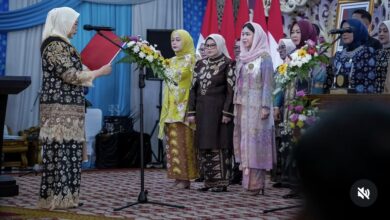 Bupati Ogan Ilir Panca Wijaya Akbar mendampingi Bunda PAUD Ogan Ilir Tikha Alamsjah Panca Wijaya, B.A (Hons) dalam Pengukuhan Bunda…